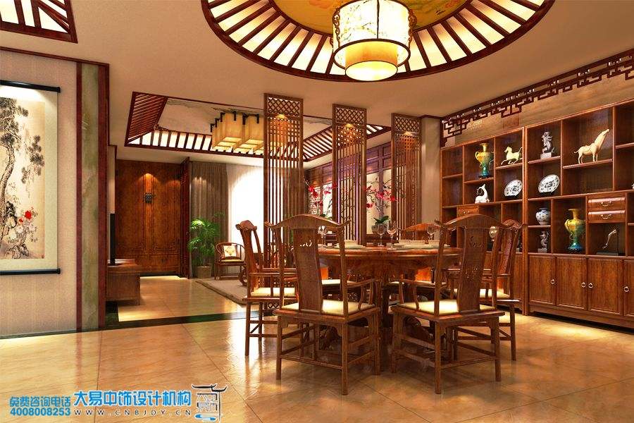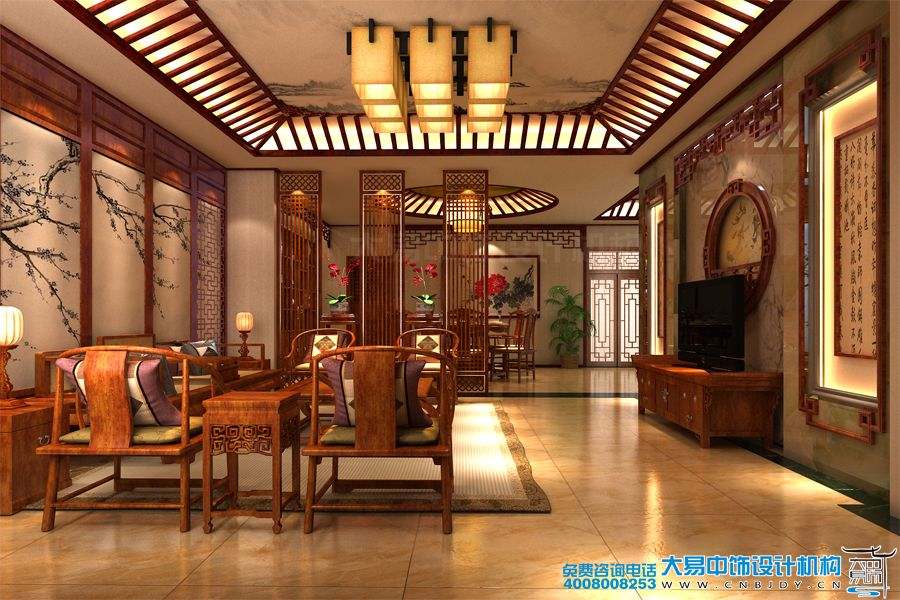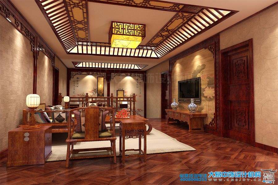 一樓客廳裝飾是會客、娛樂、家庭成員聚談的主要場所,所以設計的古雅而莊重