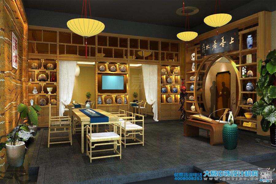 案例分析:北京古樹坊茶樓中式裝修效果圖,仿佛給人帶來一種優雅而恬淡的田園般的愜意與輕松的生活情調。特別是茶樓內部整潔而有序、工藝精湛的建筑造型,和軟裝配飾,都凸顯出茶樓自身的幽靜與唯美。步入茶樓空間的一霎那,復古的空間氛圍,細膩的書畫、茶具的布置,仿佛讓我們親身置于悠揚而又古典人文殿堂的奇妙世界里,感受到一縷茶韻的沁香。