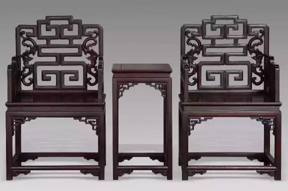 官帽椅是以其造型類似古代官員的帽子而得名,可分為南官帽椅和四出頭式官帽椅兩種。南官帽椅從造型上看,不如四出頭式大方,但南官帽椅在裝飾手法上比較容易發揮,可以采用多種形式裝飾椅背及扶手;用材可方可圓,可曲可直。它的特點是在椅背立柱和搭腦相接處做出軟圓角,由立柱作榫頭,橫梁作榫窩,橫梁壓在立柱上。“S”形椅背多采用邊框鑲板做法,中分數格,或鏤雕一透孔如意云頭,或浮雕一組簡單圖案,美觀而大方。通常成對陳設使用,很少單件陳設。