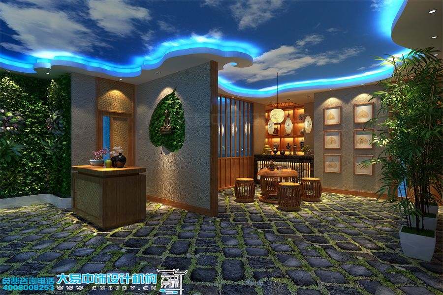 接待區(qū)地磚鋪設(shè)樸素、大氣,加之流動(dòng)、時(shí)尚的現(xiàn)代藝術(shù)氣息,會(huì)把你引進(jìn)另一種境界