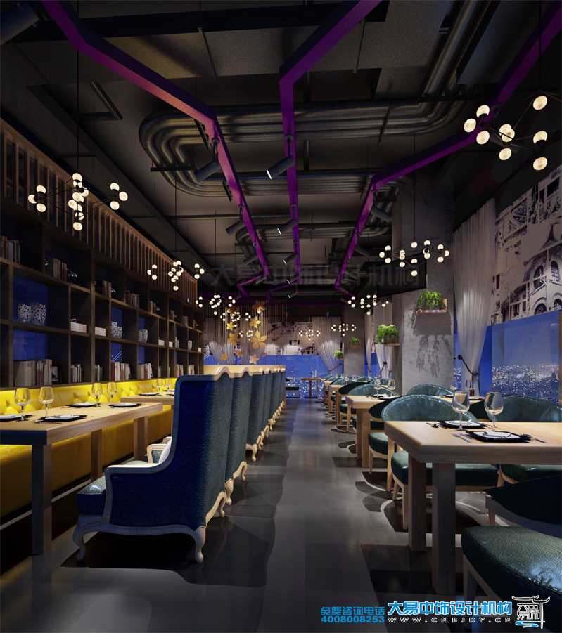 就餐區(qū)色調(diào)冷暖搭配,淡雅清新。具有古典特色的桌椅,空間以博古架隔開(kāi),置放古玩、書(shū)籍,與之相對(duì)應(yīng)的為落地窗,圖繪清華,白色紗帳裝點(diǎn),又以圖繪清華為遮簾。細(xì)膩的空間給就餐者以明亮愉悅的感官享受,而頗有工業(yè)風(fēng)的吊頂和如星辰一般點(diǎn)綴夜空的燈具增添了些許時(shí)尚趣味,古今結(jié)合,傳統(tǒng)不乏現(xiàn)代風(fēng),與此處的受眾群體格調(diào)相襯相符。