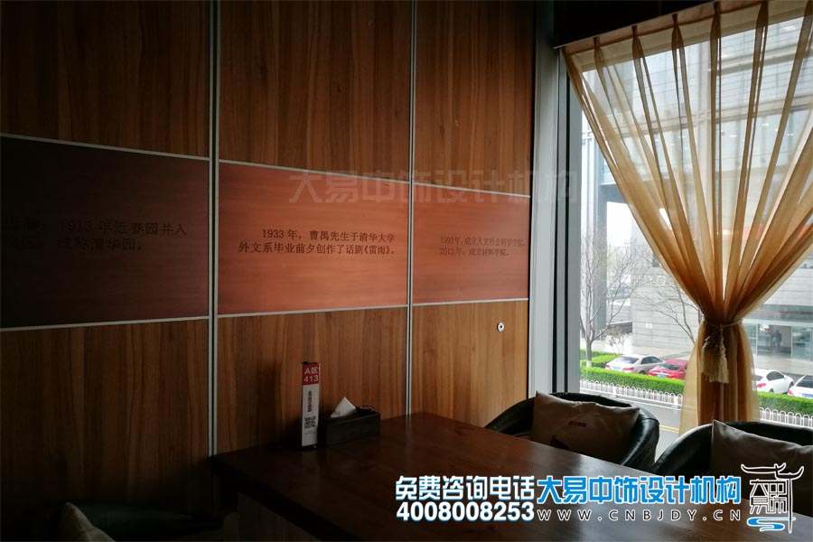 “景昃鳴禽集,水木湛清華”,大易中飾推出的此案例乃是清華園內(nèi)的主題餐廳中式設(shè)計(jì)裝修。因其特殊的地理位置——位于國(guó)際知名高校清華大學(xué),故在此設(shè)計(jì)師將中式元素同現(xiàn)代元素相結(jié)合,一方面?zhèn)鞒袀鹘y(tǒng)文化,另一方面又具有強(qiáng)烈的時(shí)代特色。整體設(shè)計(jì)案例中濃郁的學(xué)術(shù)風(fēng)和藝術(shù)感兼具,完美呈現(xiàn)當(dāng)代中國(guó)頂級(jí)學(xué)府風(fēng)范。