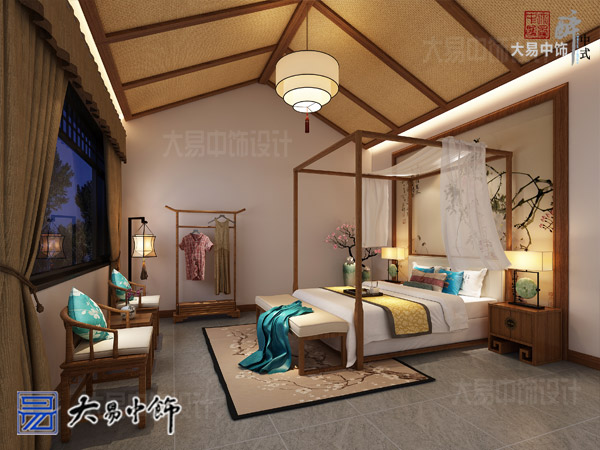 這是出自魏晉大文學家陶淵明的詩句.本民宿中式裝修設計案例就坐落在像詩一般的意境當中.