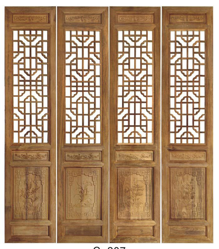 中式的裝飾木作樣式基本上都是以窗格的紋樣和雕刻的形式來表現(xiàn)的。窗格與雕刻或融合或組合,衍變出極其豐富多彩的裝飾形式。