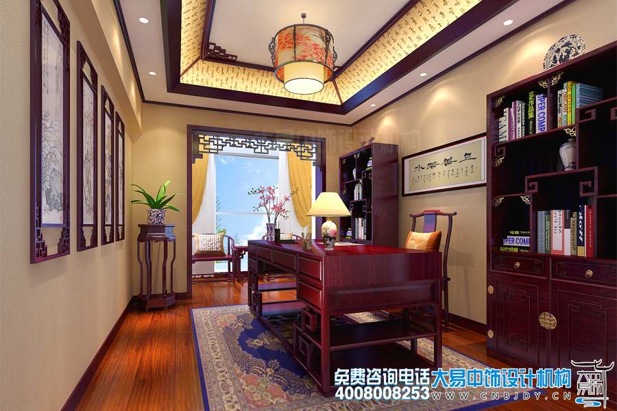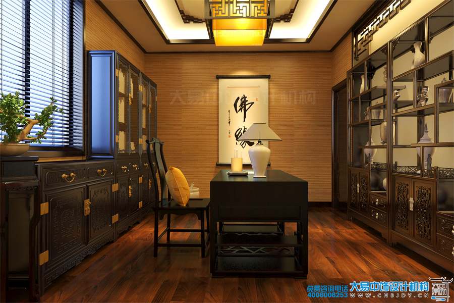 獨立書房可能空間有限,不像復式樓上的書房設計可以利用樓梯去融入收納的行列。獨立書房書房藏書量大,可以在新家中式裝修之前,盡量允許在空間范圍內選擇使用嵌入式書柜,利用墻體模式收納書籍,加之創意的藝術技法,不但實用,而且極為美觀別致。