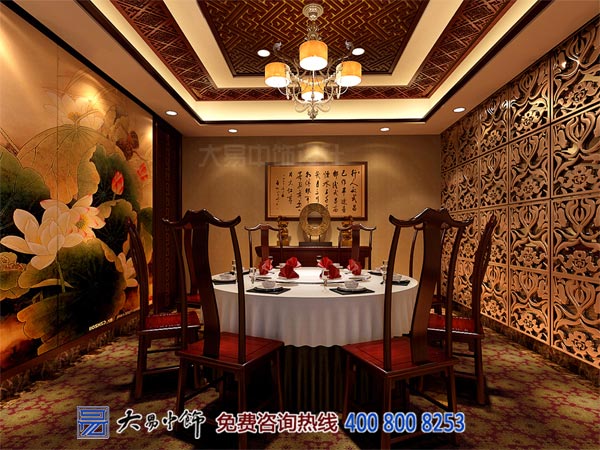 2.包間的裝修以什么為中心是最常見的問題之一。很多公司在設計時沒考慮到包間內的家具,以包間的正中心為中心,其結果是配備備餐臺及沙發、茶幾等家具后,餐臺的位置發生問題,與天花的燈具不相配,而此時包間的天花已做,燈已配好,再返工已不可能,勢必影響包間的整體效果。