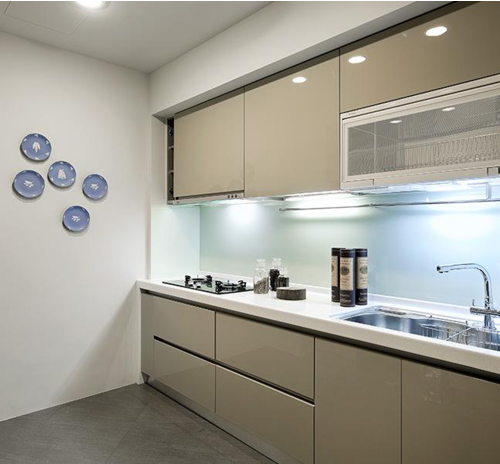由于家具的色彩往往會(huì)左右環(huán)境的色彩,因此,對(duì)廚房家具色彩的要求是能夠表現(xiàn)出干凈、刺激食欲和能夠使人愉悅。通常能夠表現(xiàn)出干凈特點(diǎn)的主要有灰度較小、明度較高的色彩如白、乳白、淡黃等,而能夠刺激食欲的色彩主要是與好吃的食品較接近、或在日常生活中能夠強(qiáng)烈刺激食欲的色彩,如橙紅、橙黃、棕褐等。能夠使人愉悅的色彩就復(fù)雜多了,不同的人,不同的生活環(huán)境對(duì)色彩的喜好有很大的變化。