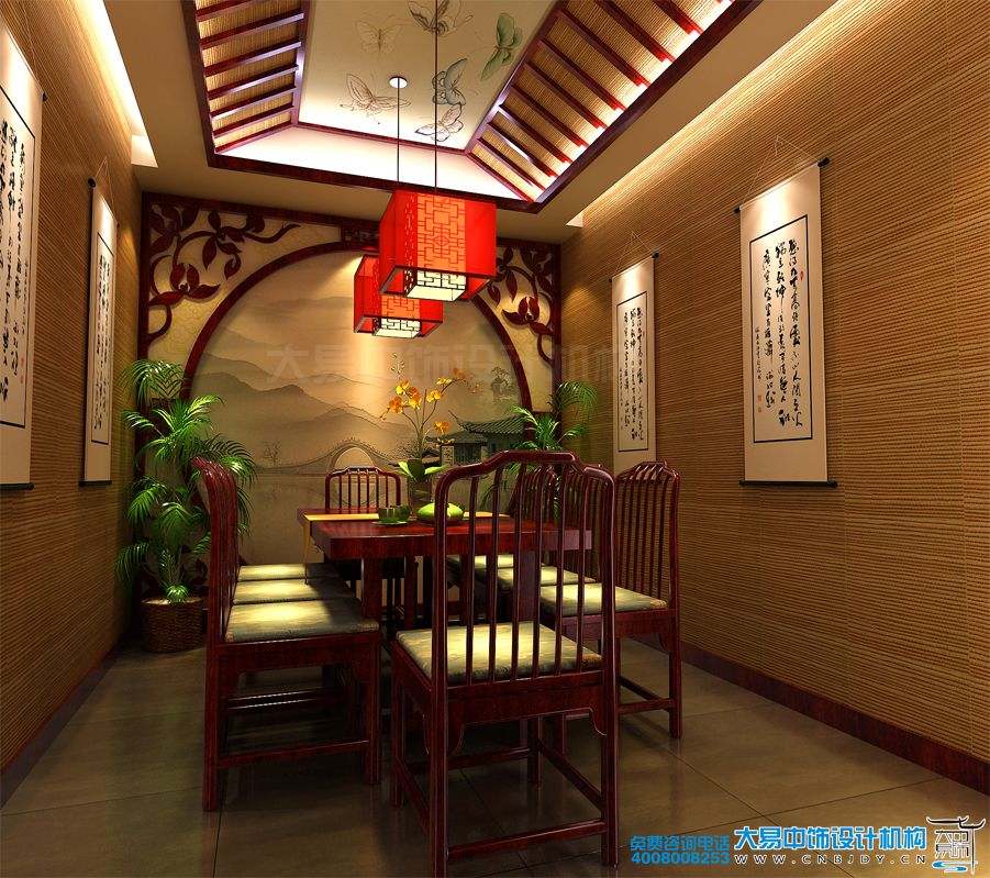 案例賞析:這是一套新中式茶樓裝修效果圖,它位于山東泰安市區。,因茶館裝飾設計定位于新中式,所以,大易中飾設計師利用中式文化深厚的意蘊和時尚創意的現代藝術基調,整體打造出帶來禪韻和寧靜的感覺。讓茶館雅然之意,從氛圍營造上表達得淋漓盡致。當然,設計師還結合現代人的審美觀點,以淺色在茶館中始終與暖意的裝飾、深沉的實木家具協調點綴,加之腳下灰色的仿古地磚的鋪設,窗格花掉、自然綠意的修飾,不但有種復古的裝飾氛圍,還吸取茶道意境的精粹,為進入茶館的飲茶者們營造出清新悠然的休閑效果。