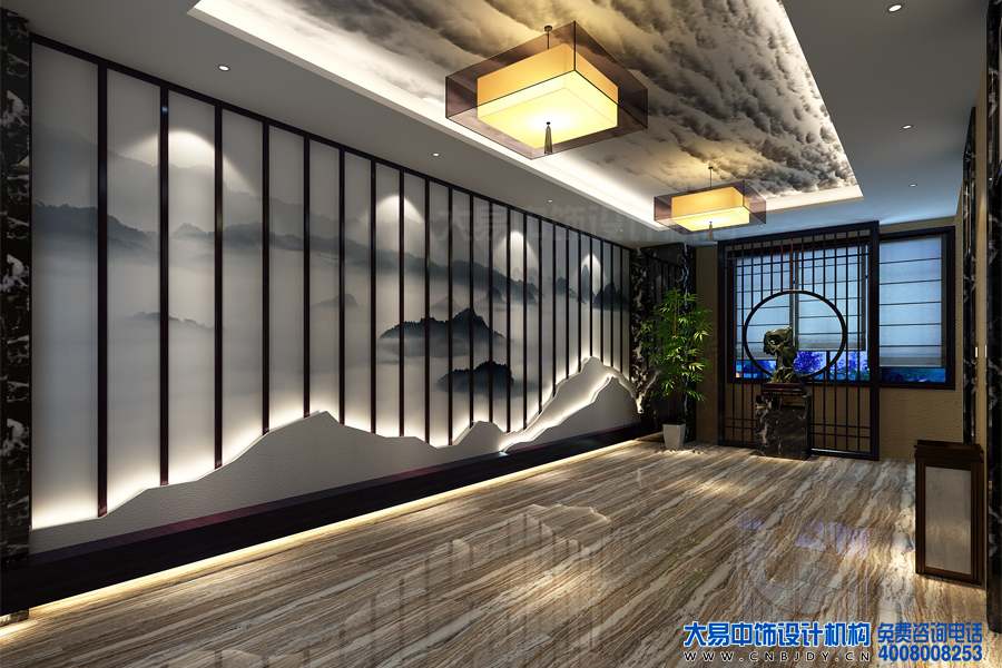 案例賞析:現代新中式風格并非完全意義上的照搬復古成分,而是經過一些藝術表現手法,將傳統(tǒng)文化的端莊、大氣之韻與時尚、靈動的現代審美需求緊密的聯系在一起,加上大易中飾設計師嫻熟的文化素養(yǎng),以及對色調掌握的妥當拿捏,都在現代辦公場合演繹的淋漓盡致。尤其是辦公場合中大面積的國畫背景墻、木雕隔斷、圓形古燈,以及具有中式元素的中式飾品的使用,都是整個空間不可缺失的元素,它們和諧共處,表現出大氣、端莊的格調,同時也為員工工作塑造出輕松、舒適的環(huán)境。