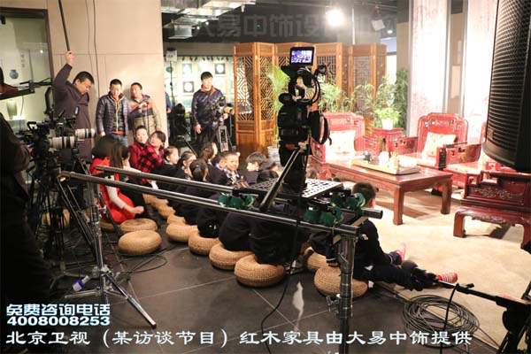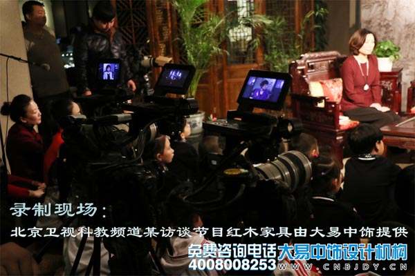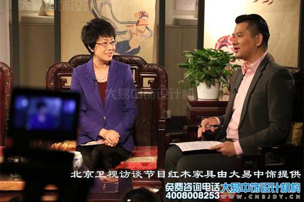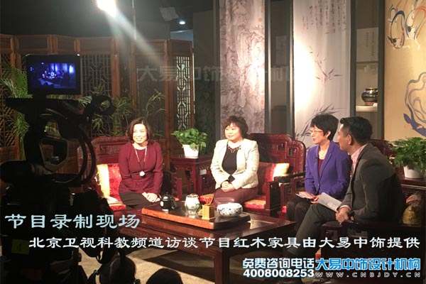 北京衛視科教頻道訪談節目的制作人員在考察和選擇節目所用家具時,經過多方比較與挑選,最終選擇了大易中飾紅木展廳的紅木家具作為節目錄制道具。大易紅木家具以其優質的品質完成了節目的錄制并達到了很好的播出效果。