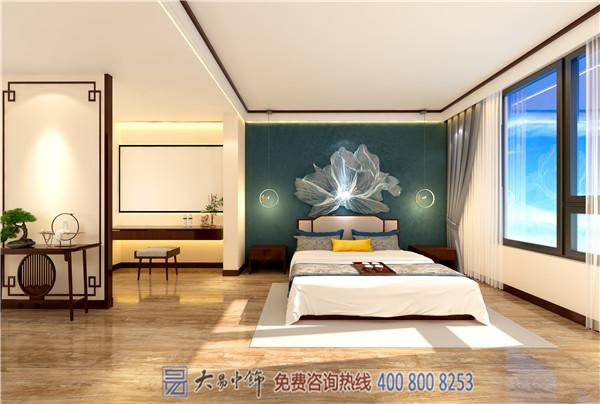 客廳的布局采用的是新中式沙發,以江南綠柳湖水繞人家的局部畫面為電視背景墻簡潔大方,客廳電視柜則采用的是現代懸空式設計,紅木設計與客廳紅木沙發相呼應,整體協調而統一。新中式花型吊燈更為客廳的設計添光加色。
